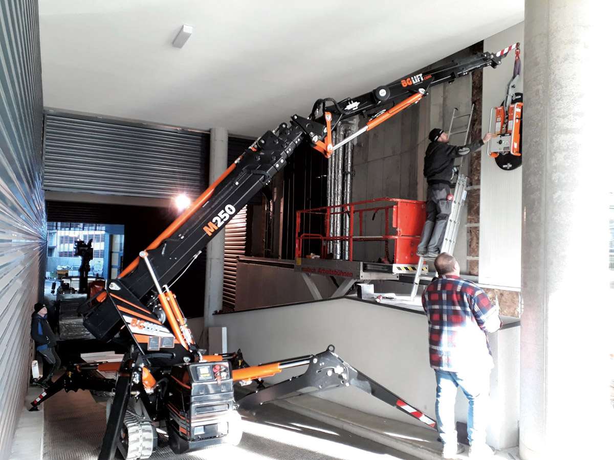 • Mini-grue araignée sur chenilles ultra polyvalente et super compacte : modèle BG Lift M 250.